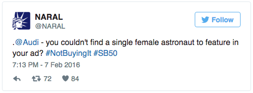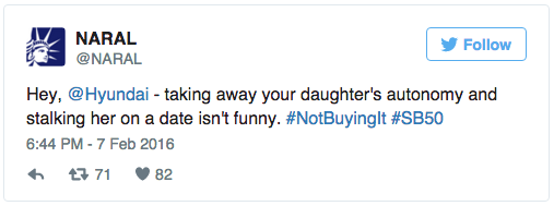 commercials. More than just a sporting championship, the Super Bowl is also a time when Madison Avenue competes to see which agency can put all its collective talent into one sixty-second spot. As per usual, NARAL thankfully has taken on